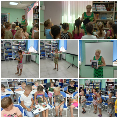 Далее экскурсия продолжилась в читальном зале, где поговорили с дошколятами о лете, книгах и чтении. Ребята поделились рассказами о своих любимых книжках, отвечали на вопросы библиотекаря, послушали увлекательную историю котенка по имени Шмяк и его библиотечной книжке из книги Р. Скоттона «Котенок Шмяк и библиотечная книжка», познакомились с книгами крымского детского писателя В. Орлова «Я рисую море», «Цветные слова», «Веселый букварь». Юные читатели сами прочитали стихотворения «Море спит», «Светлячки», «Все в порядке». Затем с удовольствием поучаствовали в игре-разминке «Раз, два, три – замри!», отгадывали литературные загадки, отвечали на вопросы литературной викторины «Мои любимые сказки» и исправляли ошибки в названиях сказок. Завершилась экскурсия просмотром новинок литературы и периодических изданий.